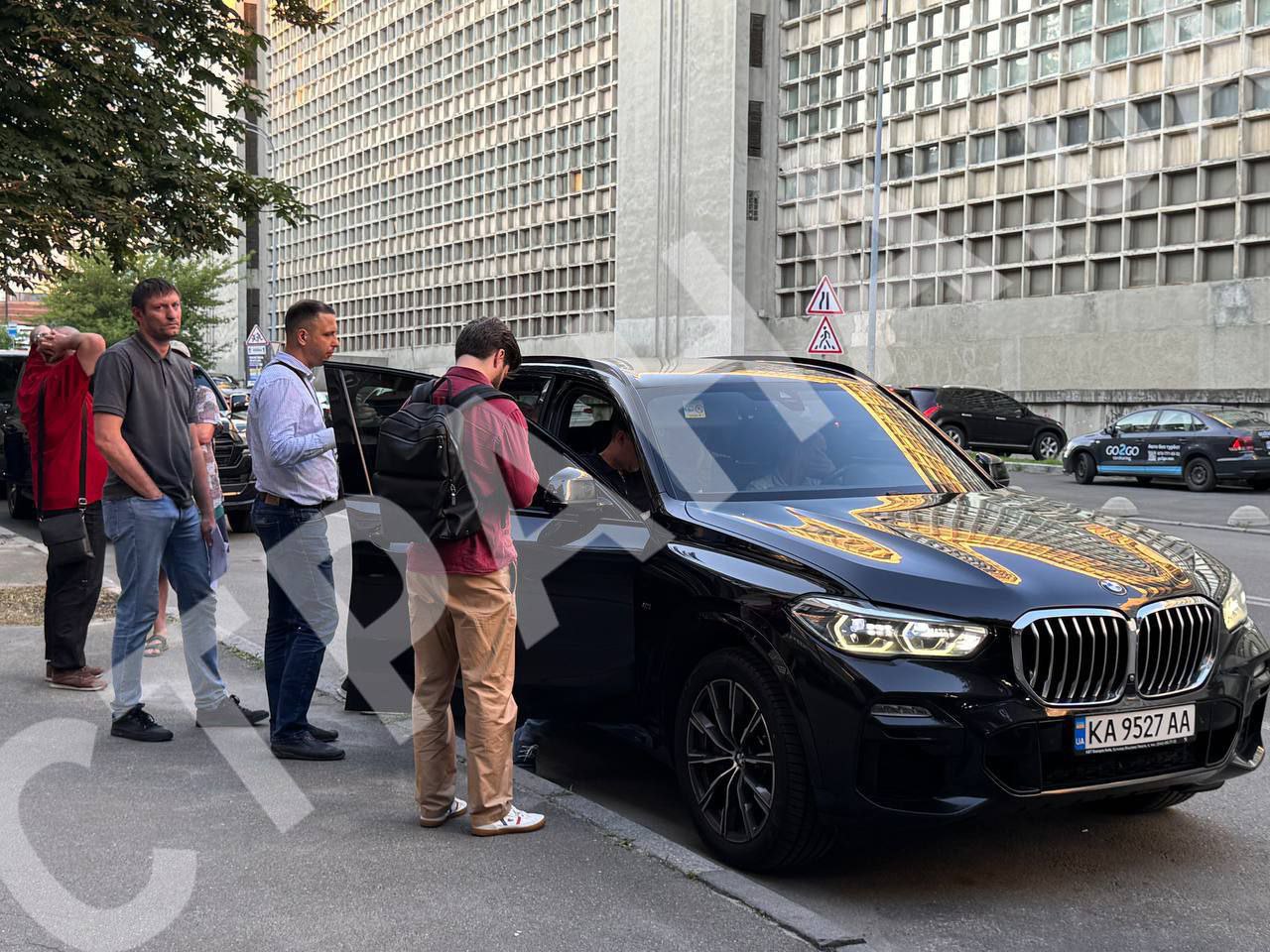 Сам Тимошенко сидел в машине на заднем сиденье, не выходил на улицу, но в итоге все же вышел к журналистам и сообщил, что следователи НАБУ попросили предоставить им его телефон.