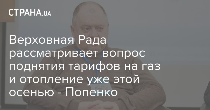 Верховная Рада рассматривает вопрос поднятия тарифов на газ и отопление уже этой осенью - Попенко