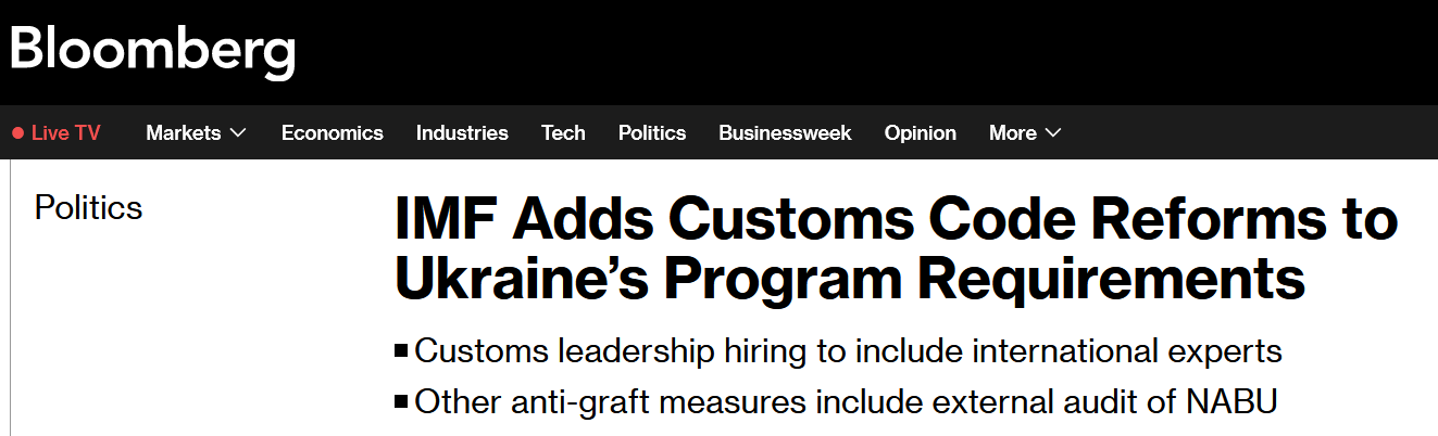 МВФ потребовал от Украины изменить Таможенный кодекс и провести первый внешний аудит в НАБУ