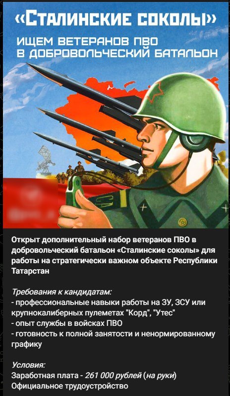 От желающих требуется опыт службы в ПВО на зенитных установках, либо умение обращаться с крупнокалиберными пулемётами.