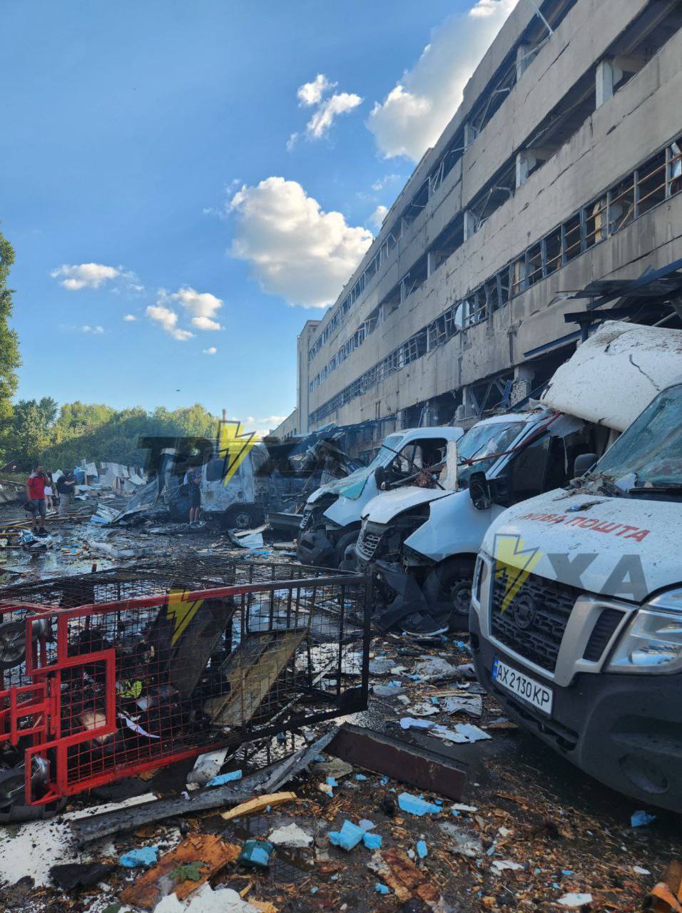 21:51 Кадры из терминала "Новой почты" в Харькове, по которому был прилет. Видео изнутри и съемки с дрона.