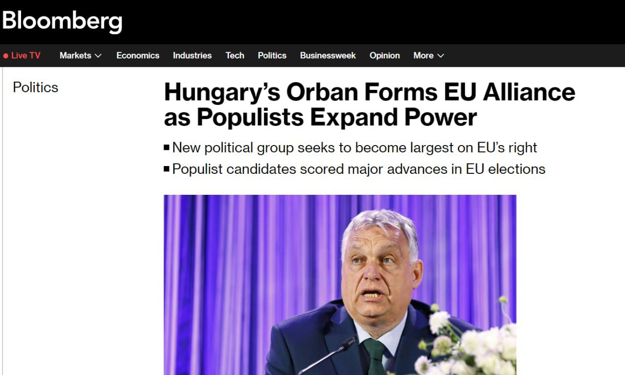 На брифинге венгерский премьер заявил, что политическая группа берет на себя ответственность "основать фракцию, которая будет самой сильной правой группировкой в Европе".