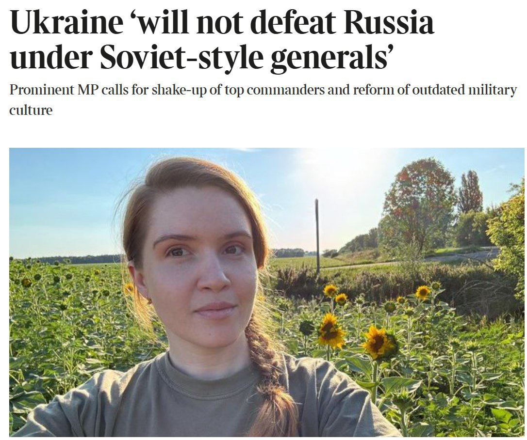 Народный депутат Украины Марьяна Безуглая в последнее время резко критикует главкома ВСУ Александра Сырского и ряд других представителей командования ВСУ. Тема с наездами на "старых генералов" вышла на страницы уже и западной прессы.
