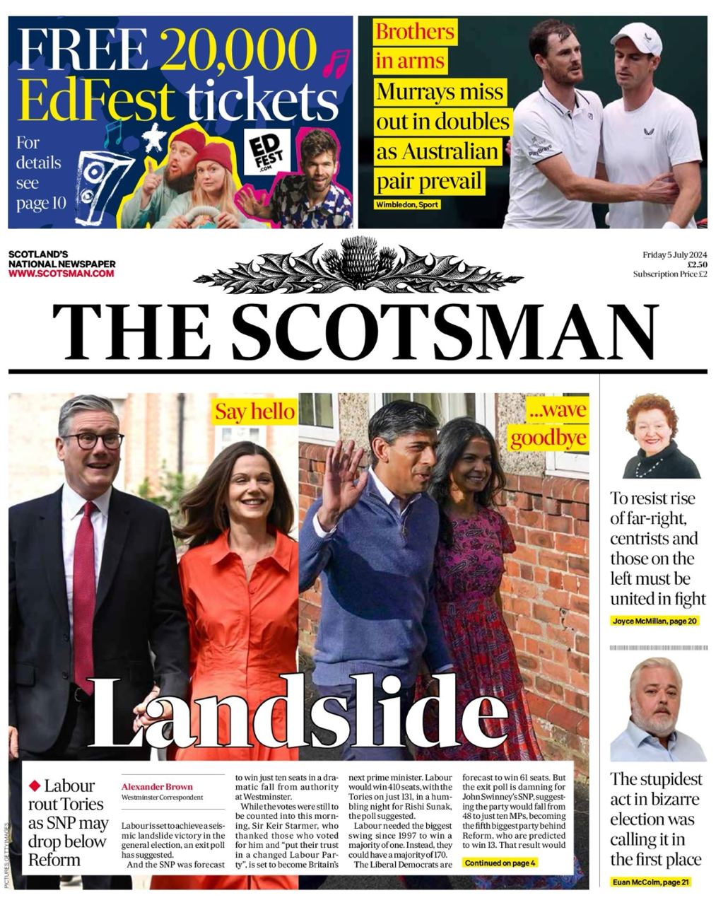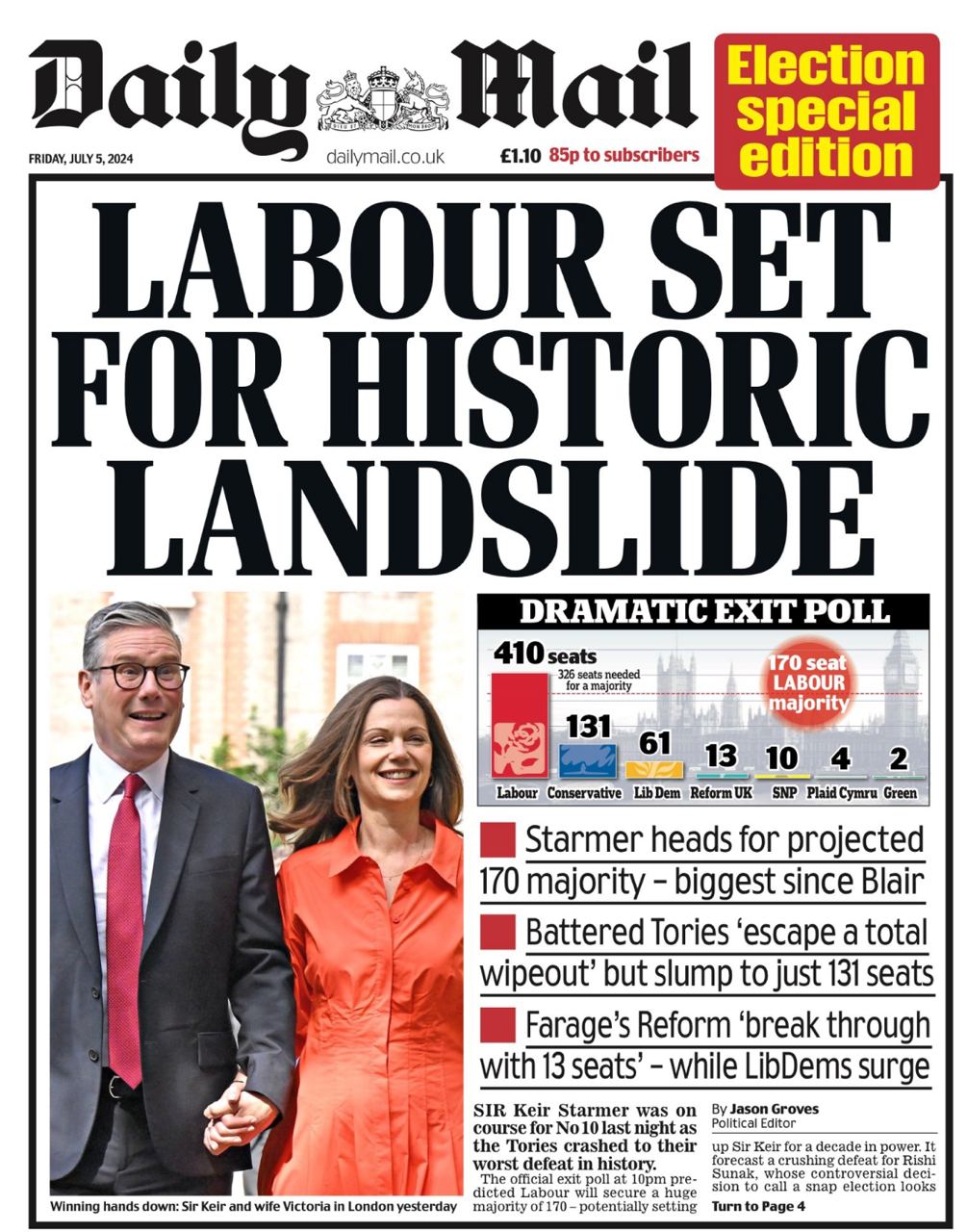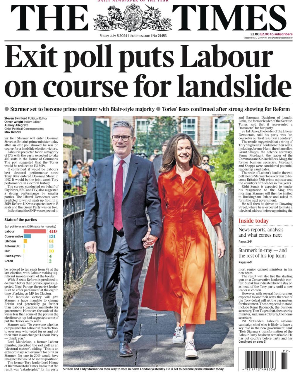 На обложках британских газет сегодня утром одно слово: landslide ("убедительная победа"). Так они комментируют результаты парламентских выборов, на которых разгромно проиграла Консервативная партия премьера Риши Сунака.