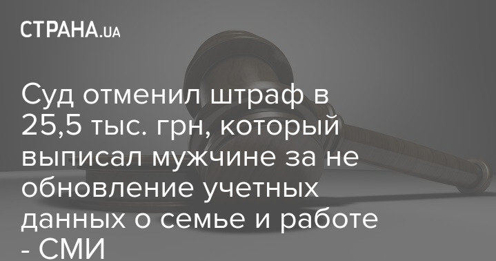 Суд отменил штраф в 25,5 тыс. грн, который выписал мужчине за не обновление учетных данных о семье и работе - СМИ