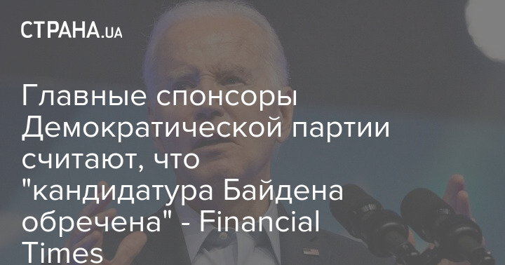 Главные спонсоры Демократической партии считают, что "кандидатура Байдена обречена". Об этом пишет Financial Times.