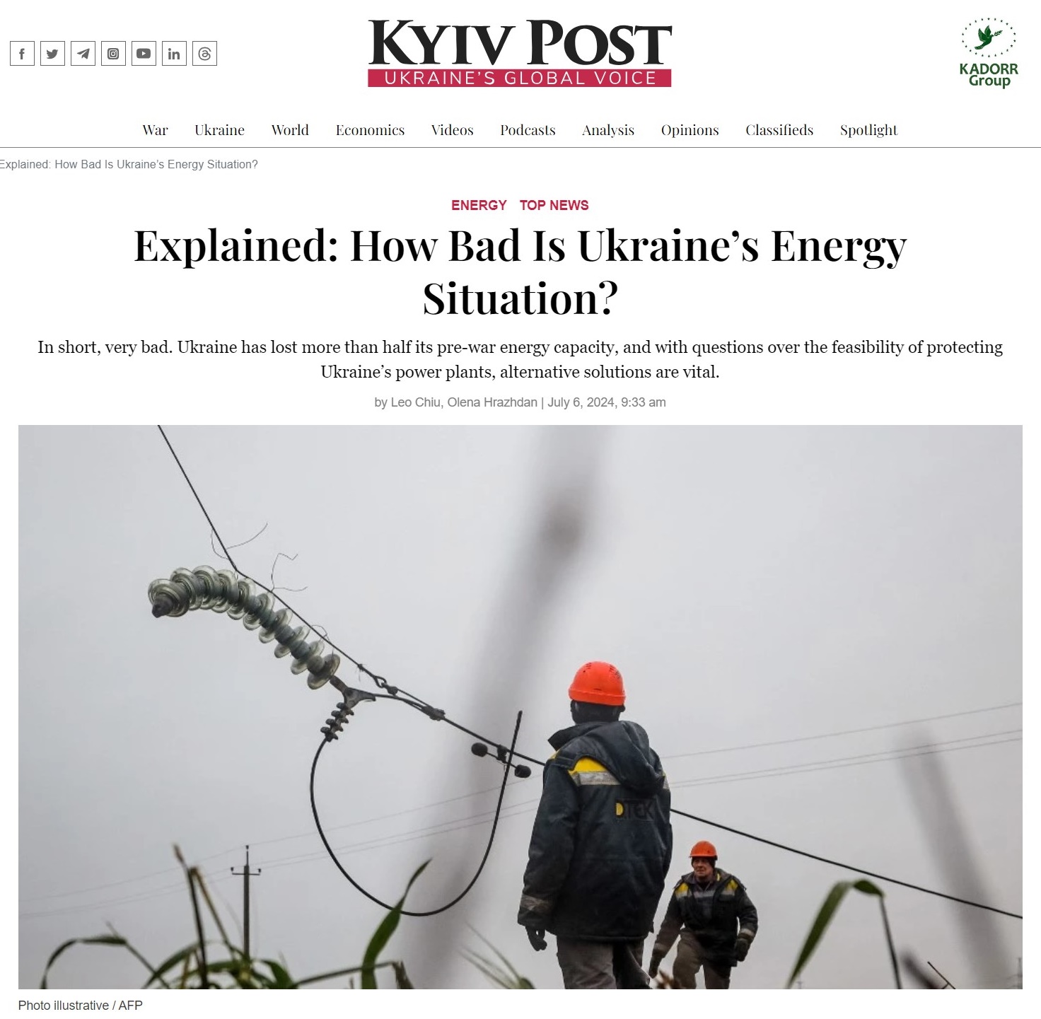 13:22 Украина потеряла более половины своих мощностей по производству электроэнергии, а зимой может не хватить электричества даже для водоснабжения и отопления, пишет Kyiv Post.