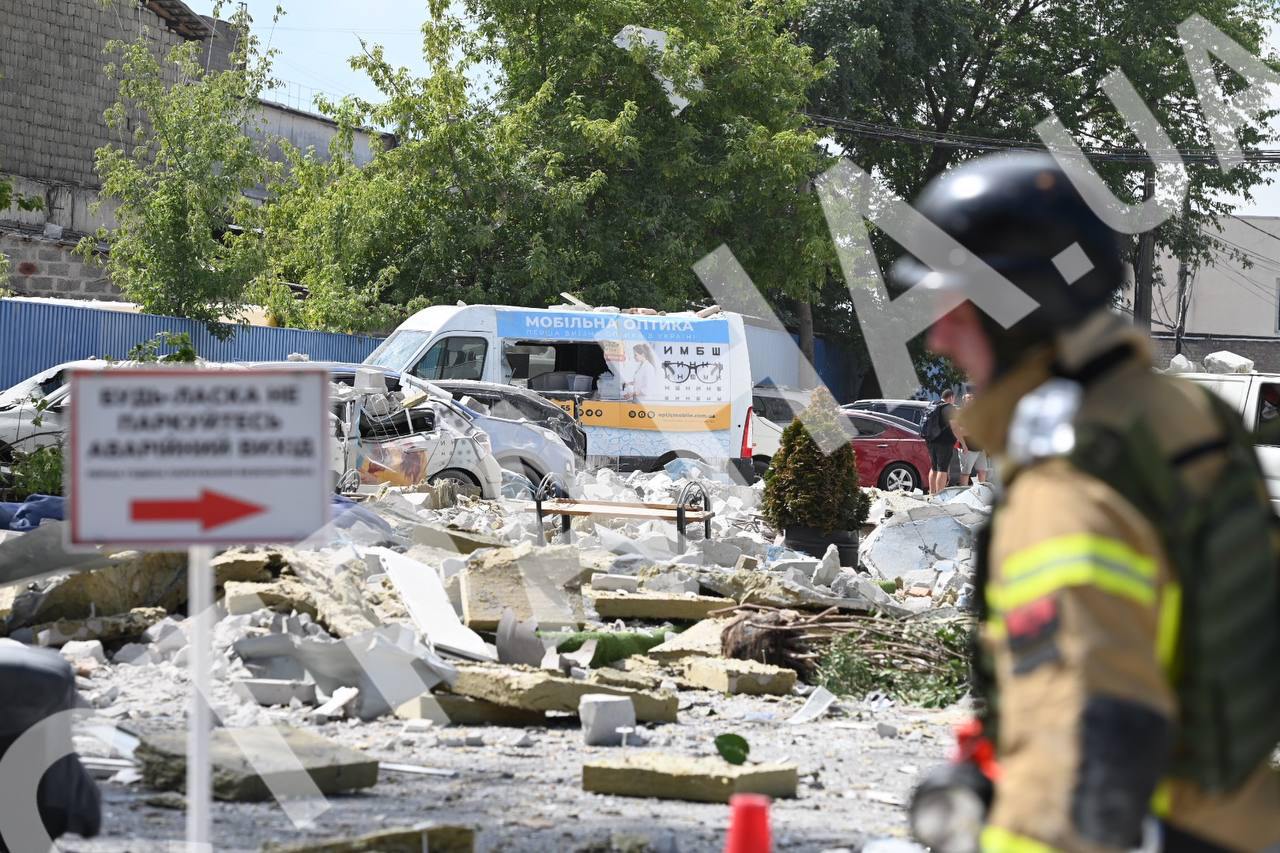 В Соломенском районе есть попадание в бизнес-центр, сообщается об одном погибшем. Коммерческие фирмы занимают первые этажи здания, на остальных этажах - жилые помещения. Разрушены 12-13-й этажи.