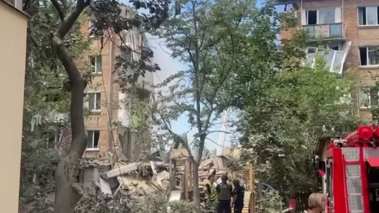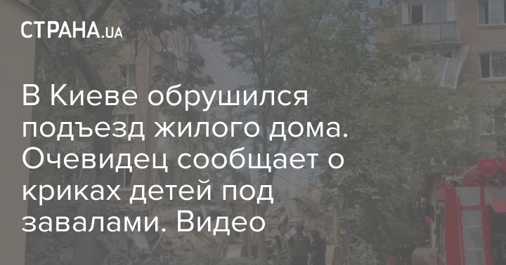 В Киеве обрушился подъезд дома после ракетного удара. Скриншот из видео