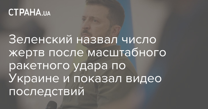 Зеленский назвал число жертв после масштабного ракетного удара по Украине и показал видео последствий