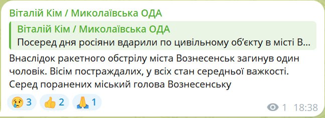 Ранен мэр Вознесенска. В результате ракетного удара по Николаевской области погиб человек, восемь пострадавших