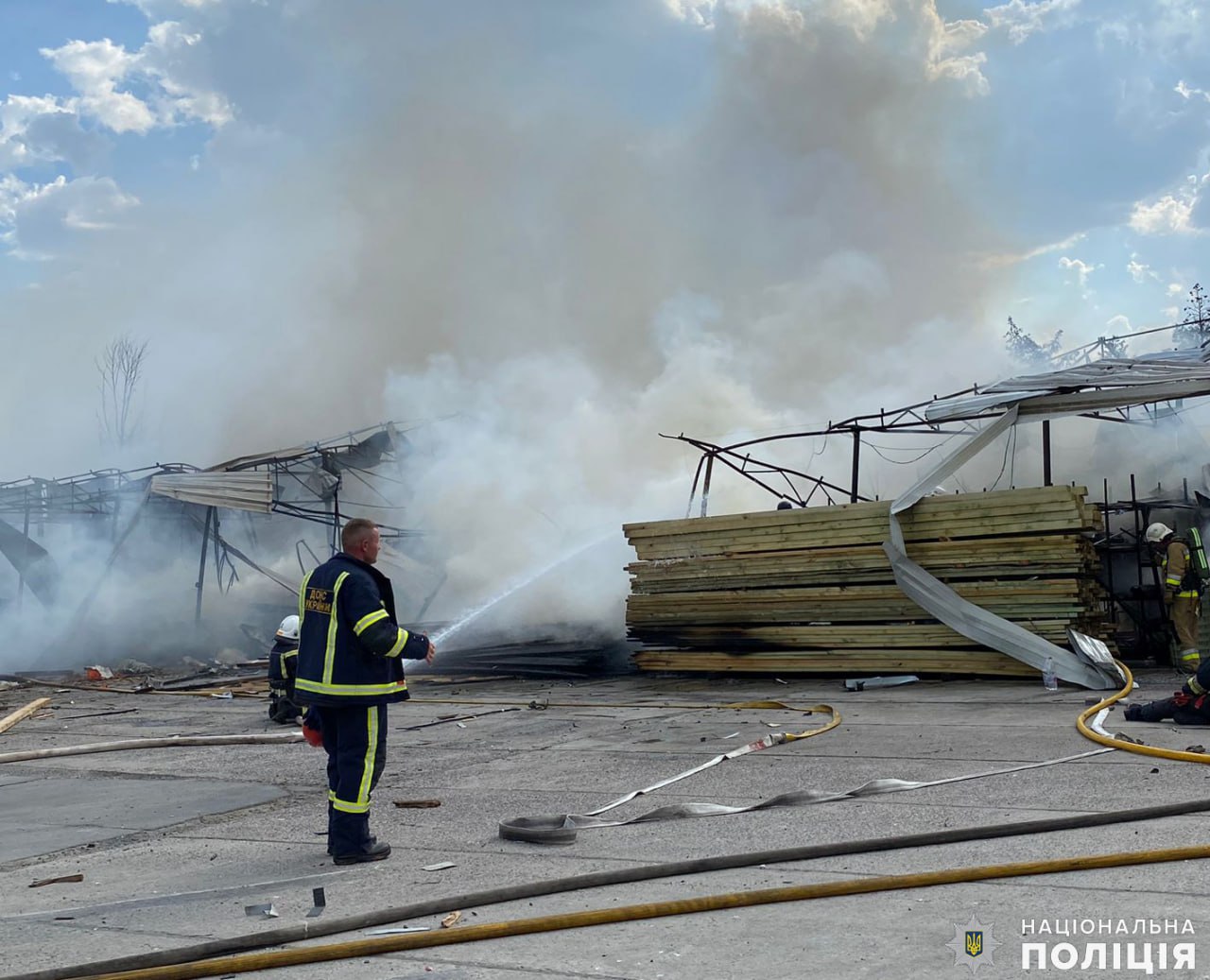 "В результате попадания ракеты по гражданскому объекту – территории предприятия, где находились работники, возник пожар складских помещений", – сообщает Нацполиция.