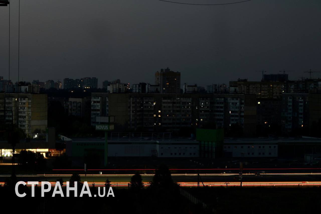 Тьма на Борщаговке. Появились фото вечернего Киева во время отключений света