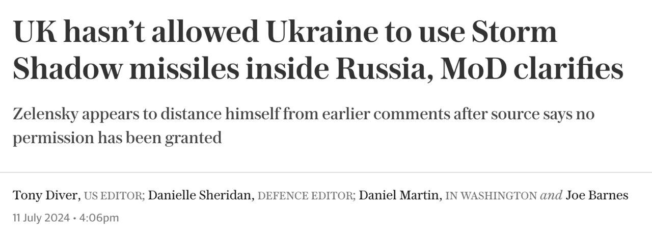 "Великобритания была вынуждена разъяснить, что не давала Украине разрешения на использование Storm Shadows для нанесения ударов по территории России, что стало неловким дипломатическим моментом для сэра Кира Стармера", - пишет The Telegraph.