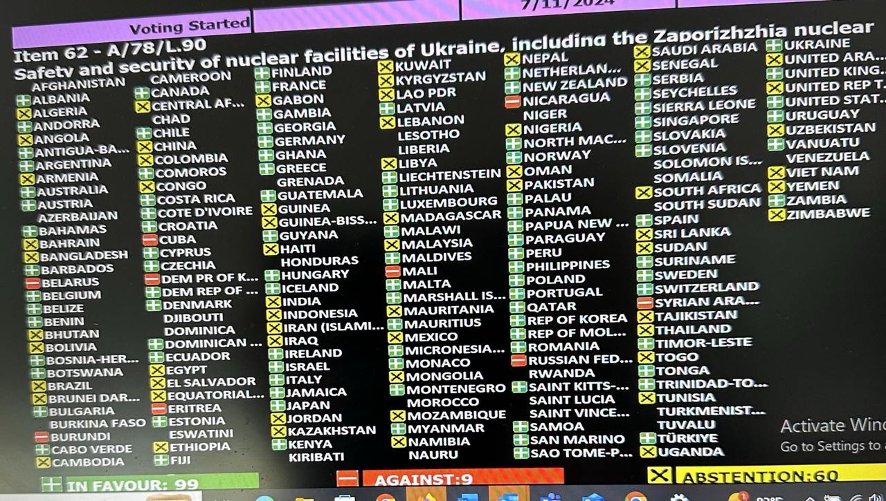 Соответствующую резолюцию поддержали 99 стран, 9 против, 60 воздержались.