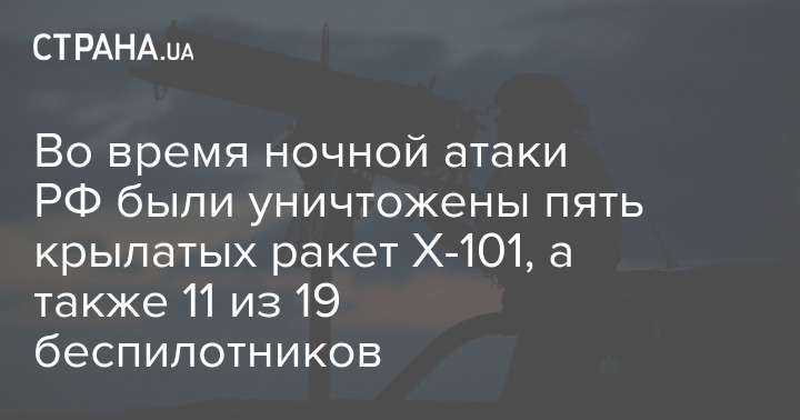 Вчера вечером россияне атаковали Украину 5-ю крылатыми ракетами воздушного базирования типа Х-101, а ночью 19-ю ударными БПЛА типа "Shahed-131/136" и беспилотниками неустановленного типа.