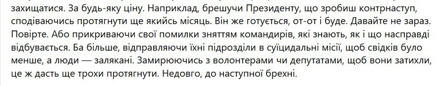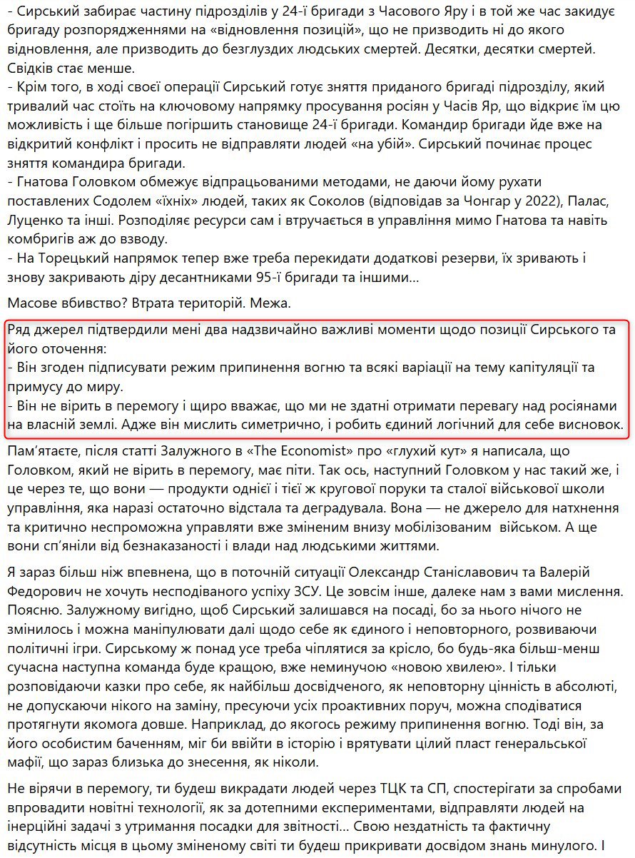 "Мне подтвердили два важнейших момента относительно позиции Сырского и его окружения: