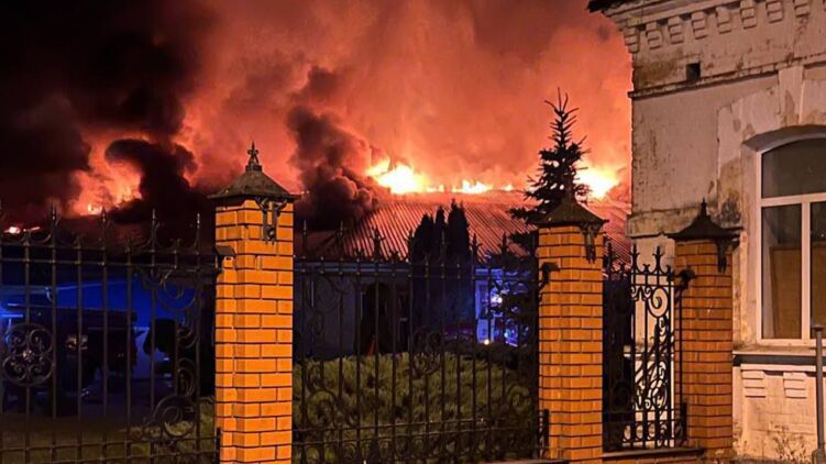 После сброса с беспилотника взрывного устройства на предприятии возник пожар. Фото: Telegram