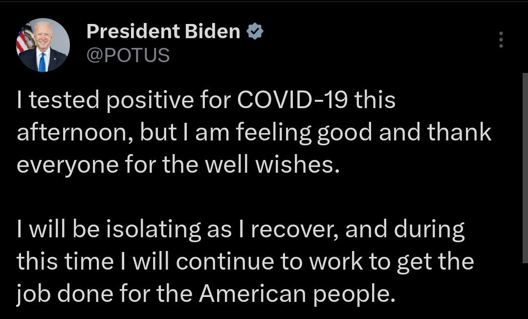В госпитализации Байден не нуждается, но ушел на самоизоляцию и принимает антивирусные препараты.