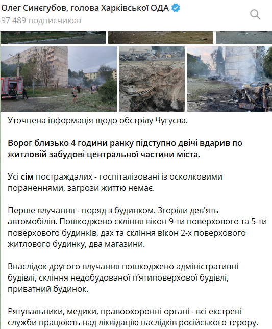 Последствия удара по Чугуеву. Фото: Telegram/synegubov