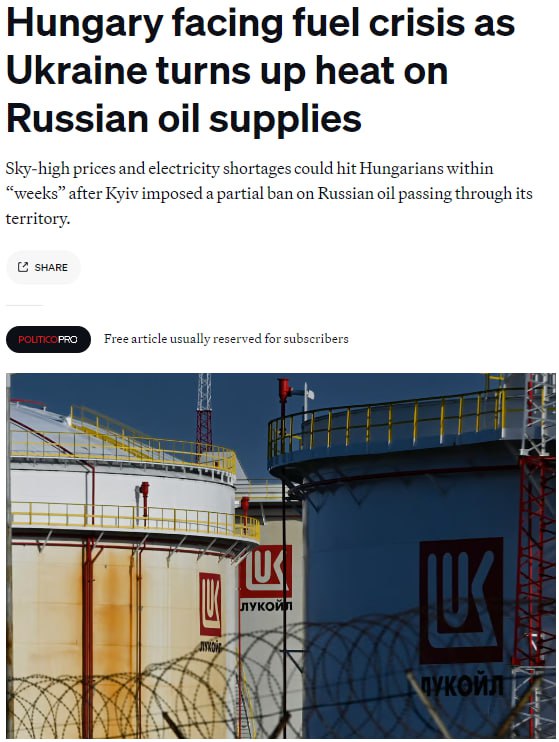 Венгрии грозит топливный кризис из-за того, что Украина перекрыла транзит российской нефти.