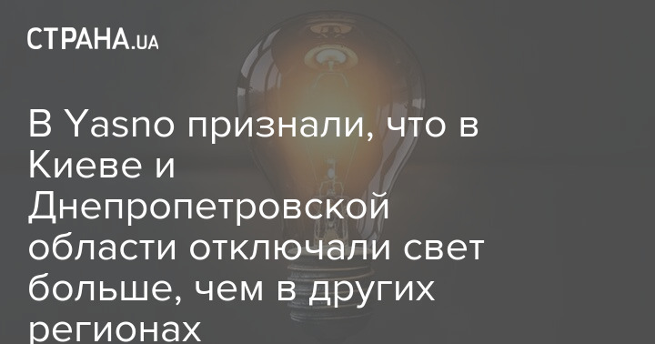 В Yasno признали, что в Киеве и Днепропетровской области отключали свет больше, чем в других регионах