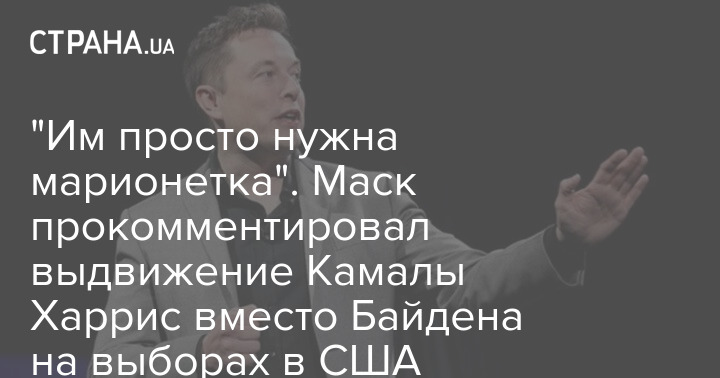 Американский бизнесмен Илон Маск назвал "марионеткой" вице-президента Камалу Харрис, которую глава Белого дома Джо Байден выставляет вместо себя на выборы президента США.