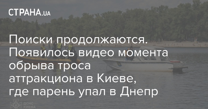 Поиски продолжаются. Появилось видео момента обрыва троса аттракциона в Киеве, где парень упал в Днепр