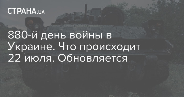 В понедельник, 22 июля, в Украине идет 880-й день войны с Россией.