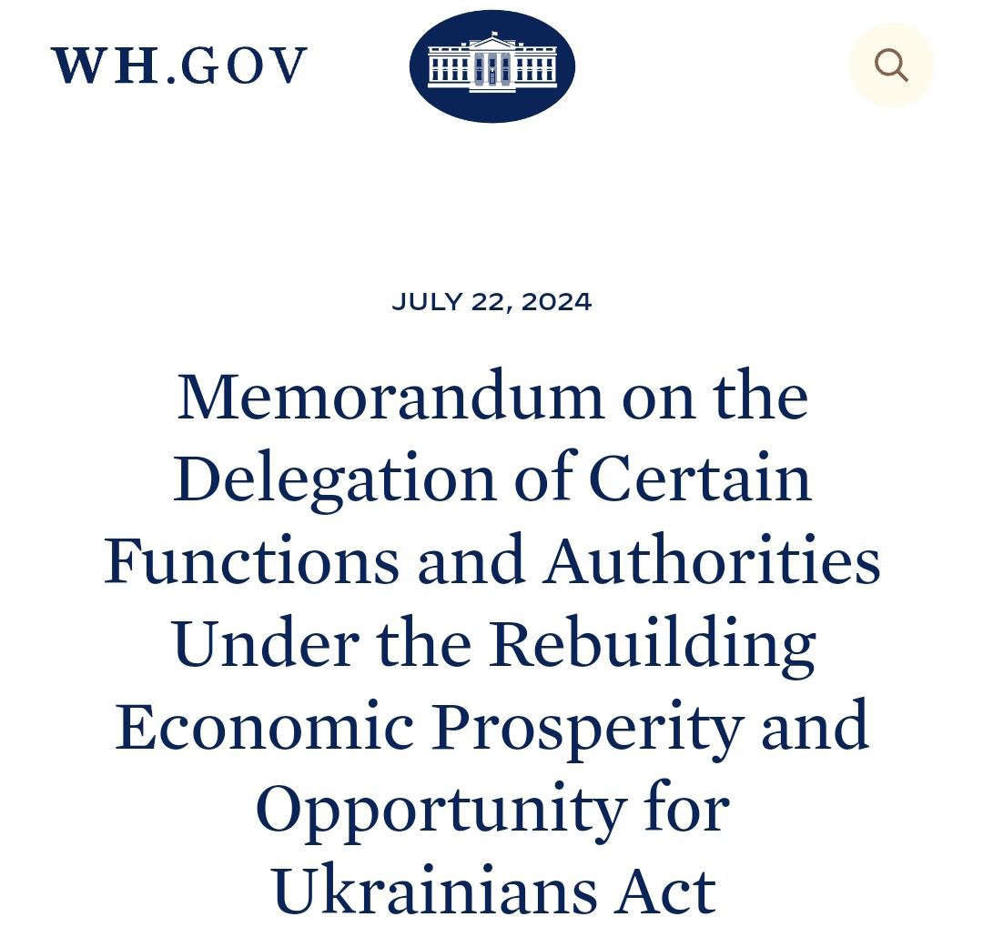 Там уточняется, что речь идёт о полномочиях в рамках закона "О восстановлении экономического благосостояния и возможностей для украинцев" (REPO).