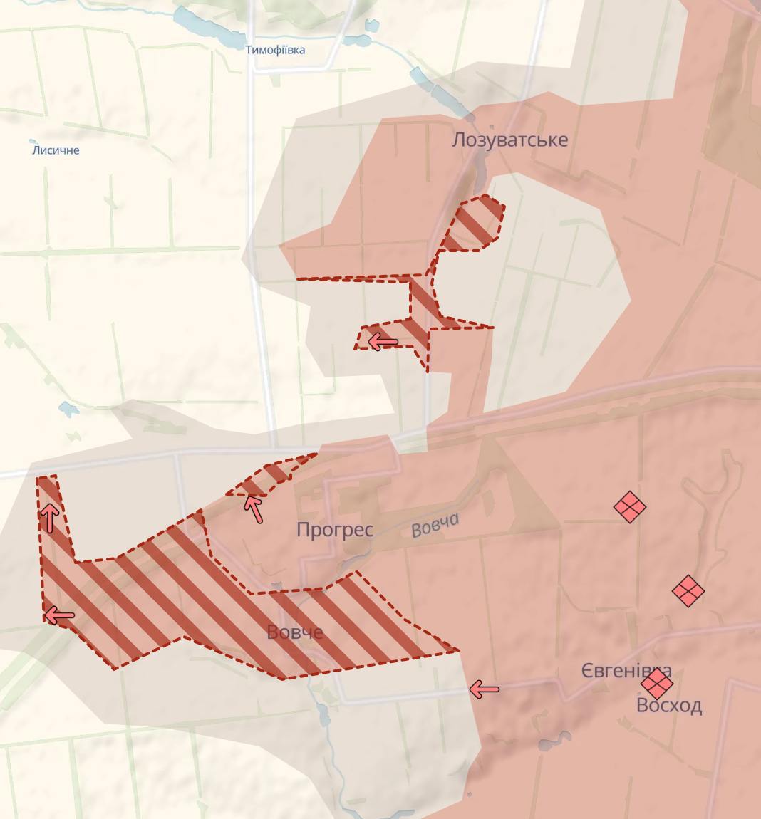 Особенно существенное продвижение в Волчьем. За сутки был фактически потерян весь населенный пункт.