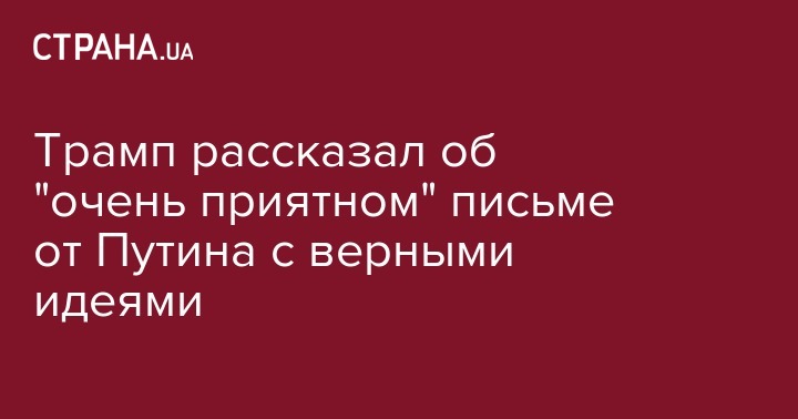 Трамп рассказал об "очень приятном" письме от Путина с верными идеями