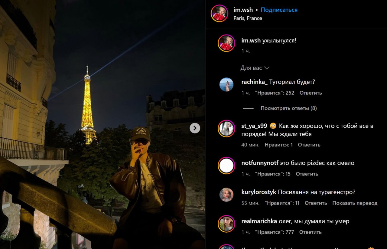 А сегодня Олег выложил в Инстаграме видео и фото на фоне Эйфелевой башни, подписав его: "Ухыльнулся!"