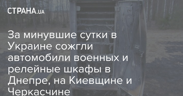 За минувшие сутки в Украине сожгли автомобили военных и релейные шкафы в Днепре, на Киевщине и Черкасчине