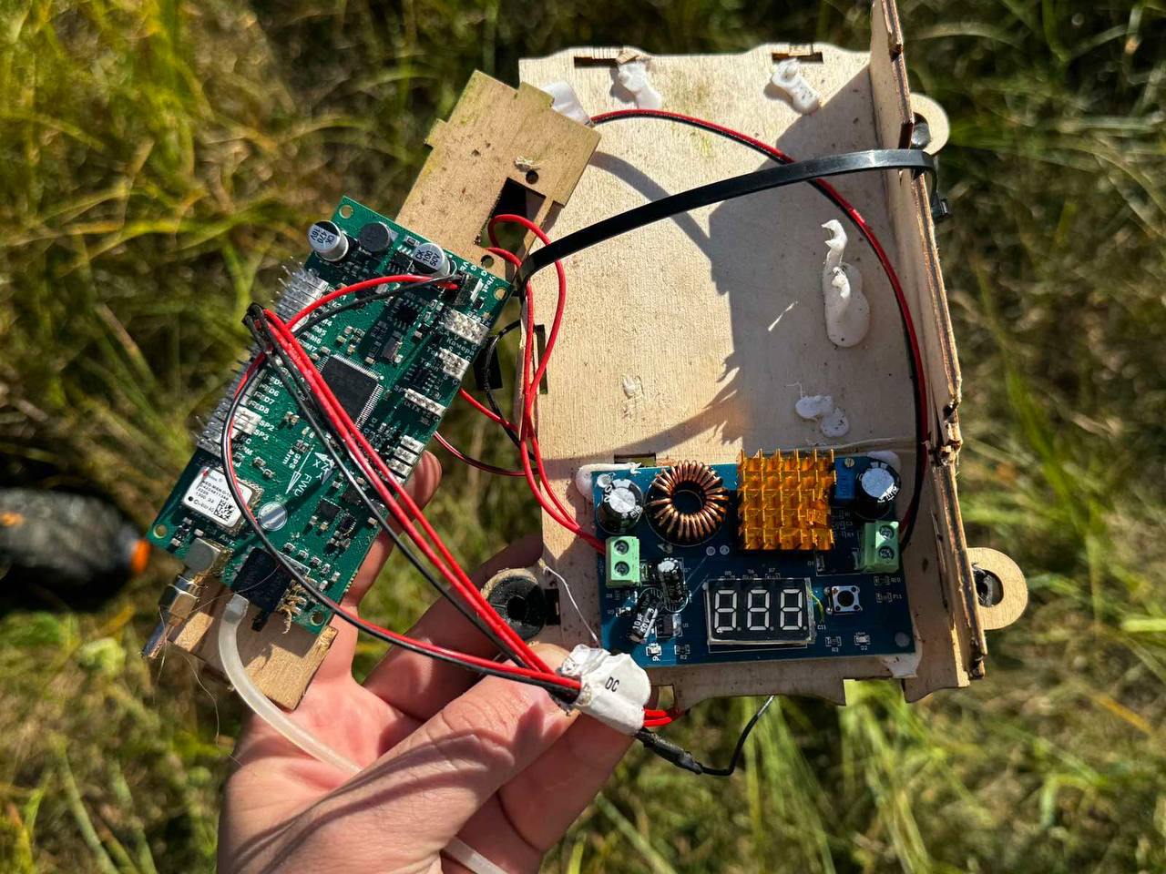 "Фанера, пенопласт обычный GPS, полетный контроллер. Все максимально простое и дешевое", - комментирует он.