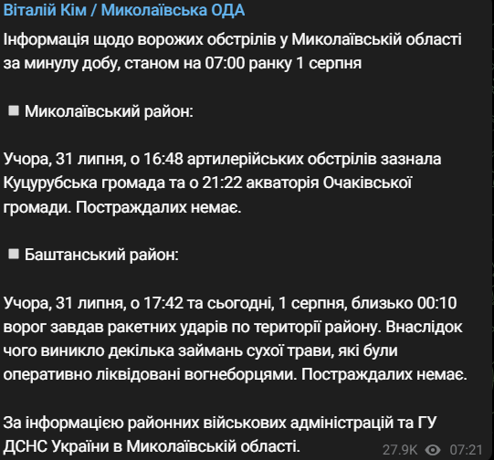 Оба по Баштанскому району. Первый прилёт был вечером среды, второй ночью.