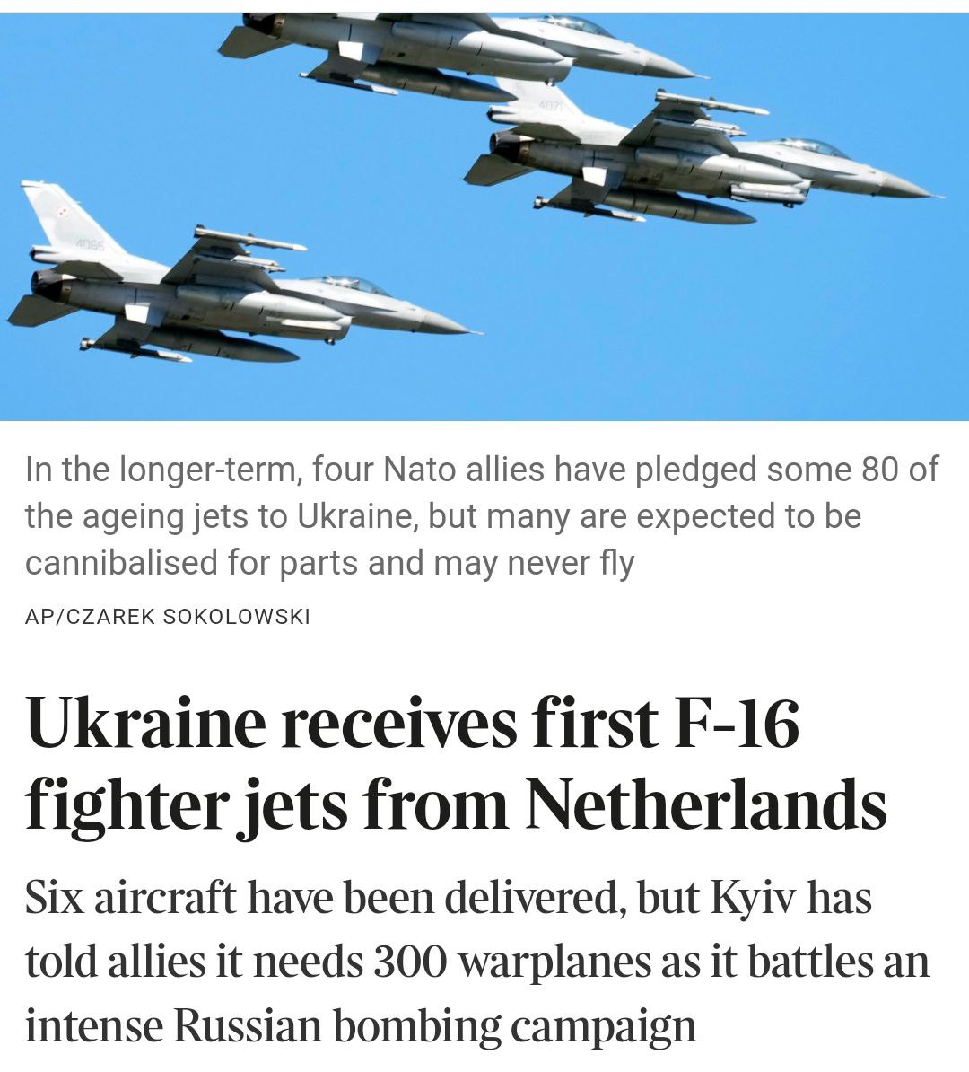 14:26 Число F-16, которые может получить Украина, на данный момент небольшое и ограничено количеством обученных пилотов, сообщает The New York Post.