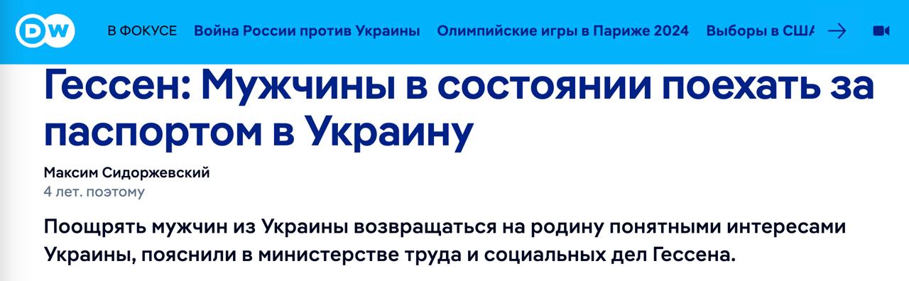 В немецкой федеральной земле Гессен не будут выдавать украинским мужчинам мобилизационного возраста немецкие аналоги загранпаспорта.