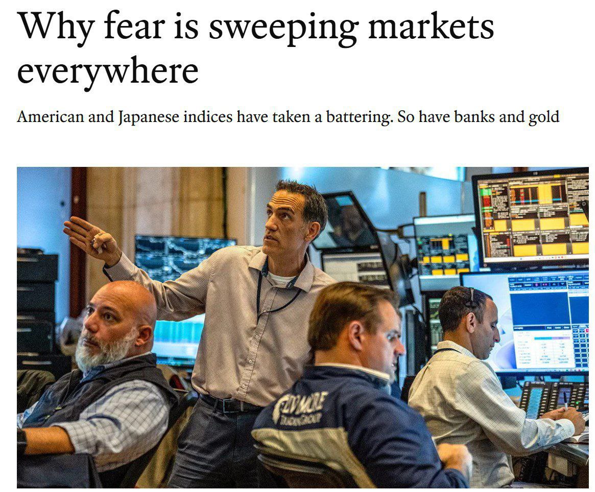Американский индекс Nasdaq 100, в котором преобладают технологические компании, упал более чем на 10% с момента пика в середине июля. Японский индекс Topix потерял двузначные цифры, а 2 августа упал сразу на 6%, что стало худшим днем с 2016 года.