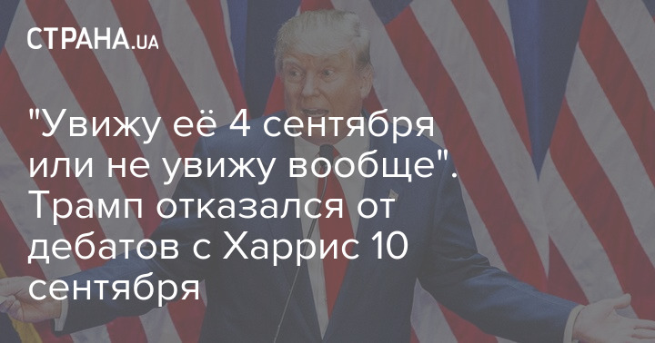 "Увижу её 4 сентября или не увижу вообще". Трамп отказался от дебатов с Харрис 10 сентября