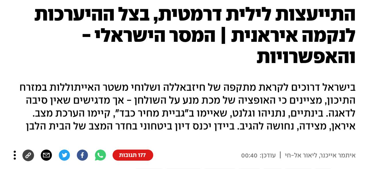 Напомним, по данным СМИ, нападение Ирана и "Хезболлы" на Израиль может начаться уже сегодня.