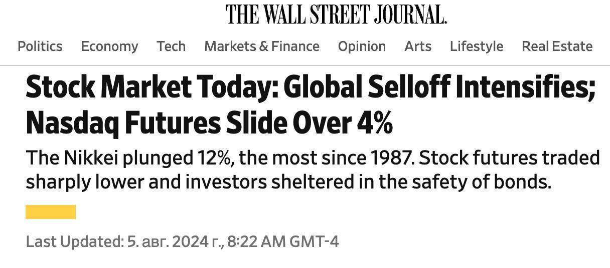 А в 16:30 по Киеву стартовали торги в США. Экономисты опасаются, что в Штатах тоже будет резкий спад. Его уже показала распродажа акций технологических компаний: Nvidia, Meta и Apple потеряли по 9% или более.