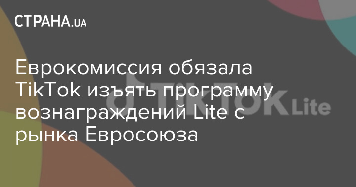 Еврокомиссия (ЕК) обязала изъять с рынка Евросоюза TikTok Lite - версию приложения, позволяющую получать вознаграждение.