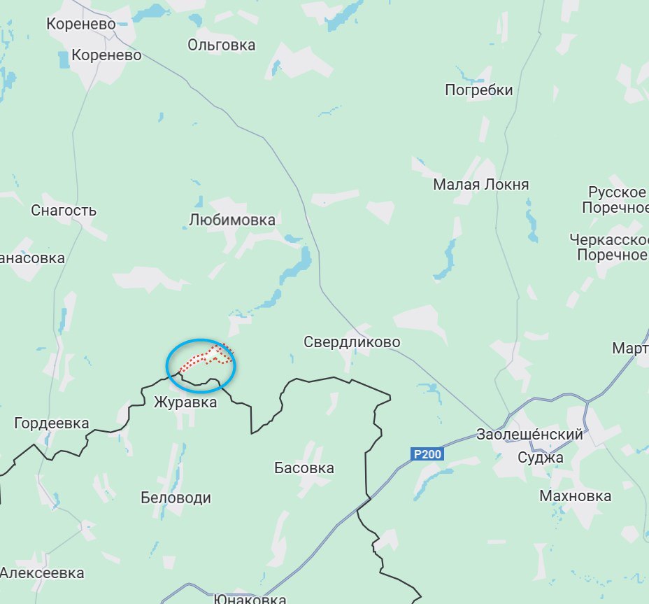 Сообщают, что украинские силы атакуют российское село Свердликово близ границы. Оно расположено на трассе, соединяющей города Коренево и Суджа.