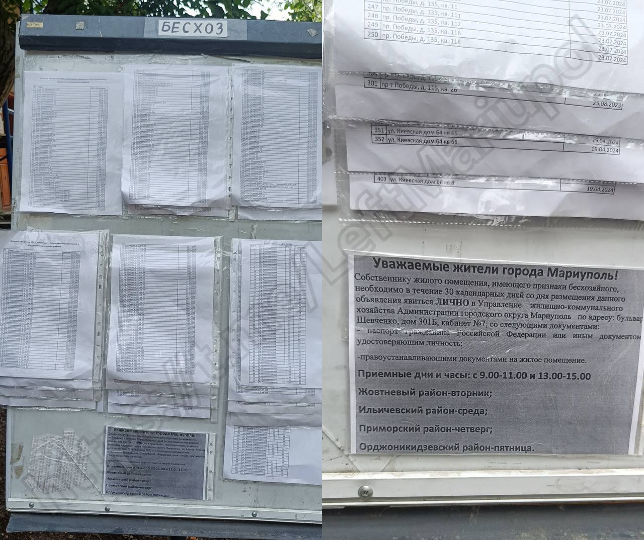 Появились фото списков "бесхозного" жилья, которые вывешивают в Мариуполе назначенные Россией "власти".