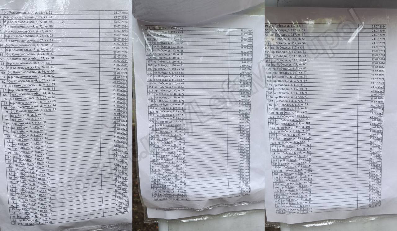 В списках на фото перечислены 211 квартир Левобережного района Мариуполя.
