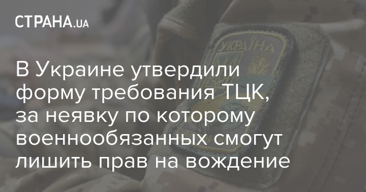 Минобороны Украины утвердило форму требования, за неявку по которому ТЦК смогут обращаться в суд о лишении военнообязанного права управления автомобилем.