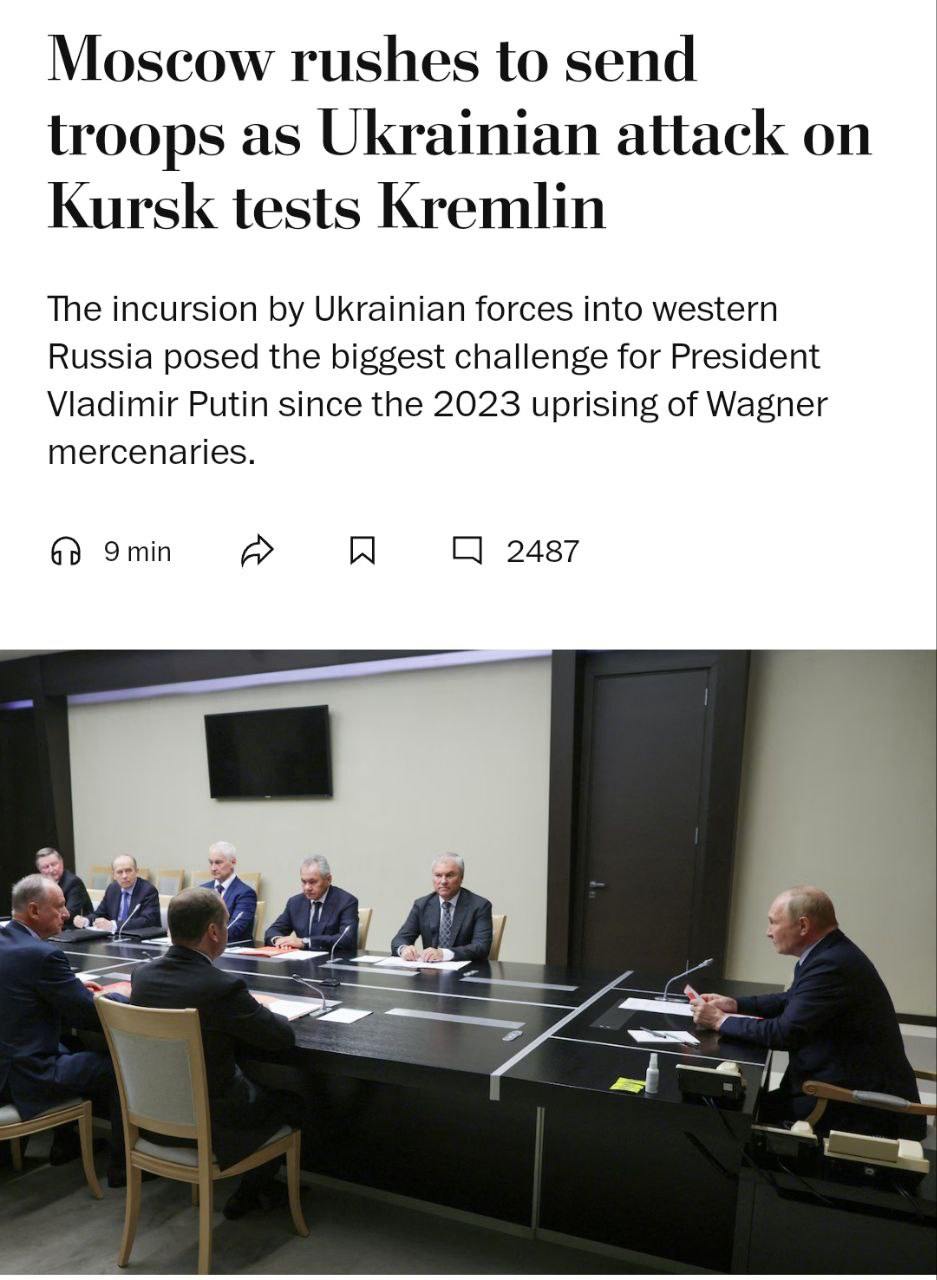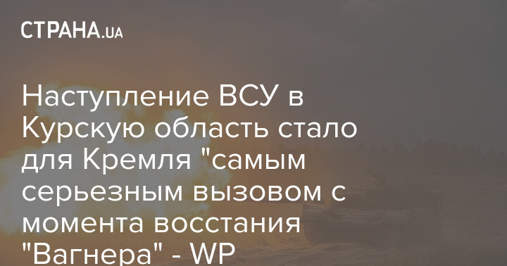 Наступление ВСУ в Курскую область стало для Кремля "самым серьезным вызовом с момента восстания "Вагнера" - WP