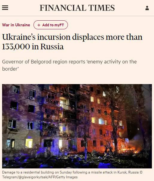 Более ста тысяч жителей Белгородской и Курской областей покинули свои дома после наступления Украины - FT