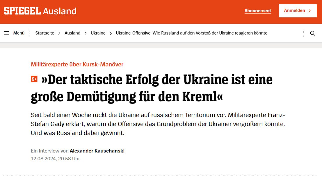 Такое мнение высказал военный эксперт Франц-Стефан Гади в интервью немецкому журналу Der Spiegel.